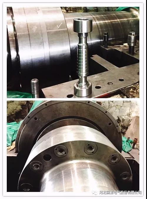 以上合作客戶均為GE汽輪機通流改造項目,配套國源電氣GOINE生產的M48液壓螺栓,每個對輪安裝12條液壓螺栓,共計24條液壓螺栓進行安裝使用。安裝前,國源檢修人員首先對對輪孔按照設計要求進行鏜孔、粗磨、精磨等工序作業;對輪螺母孔端面根據設計要求加工為斜面,滿足與螺母的端面配合。